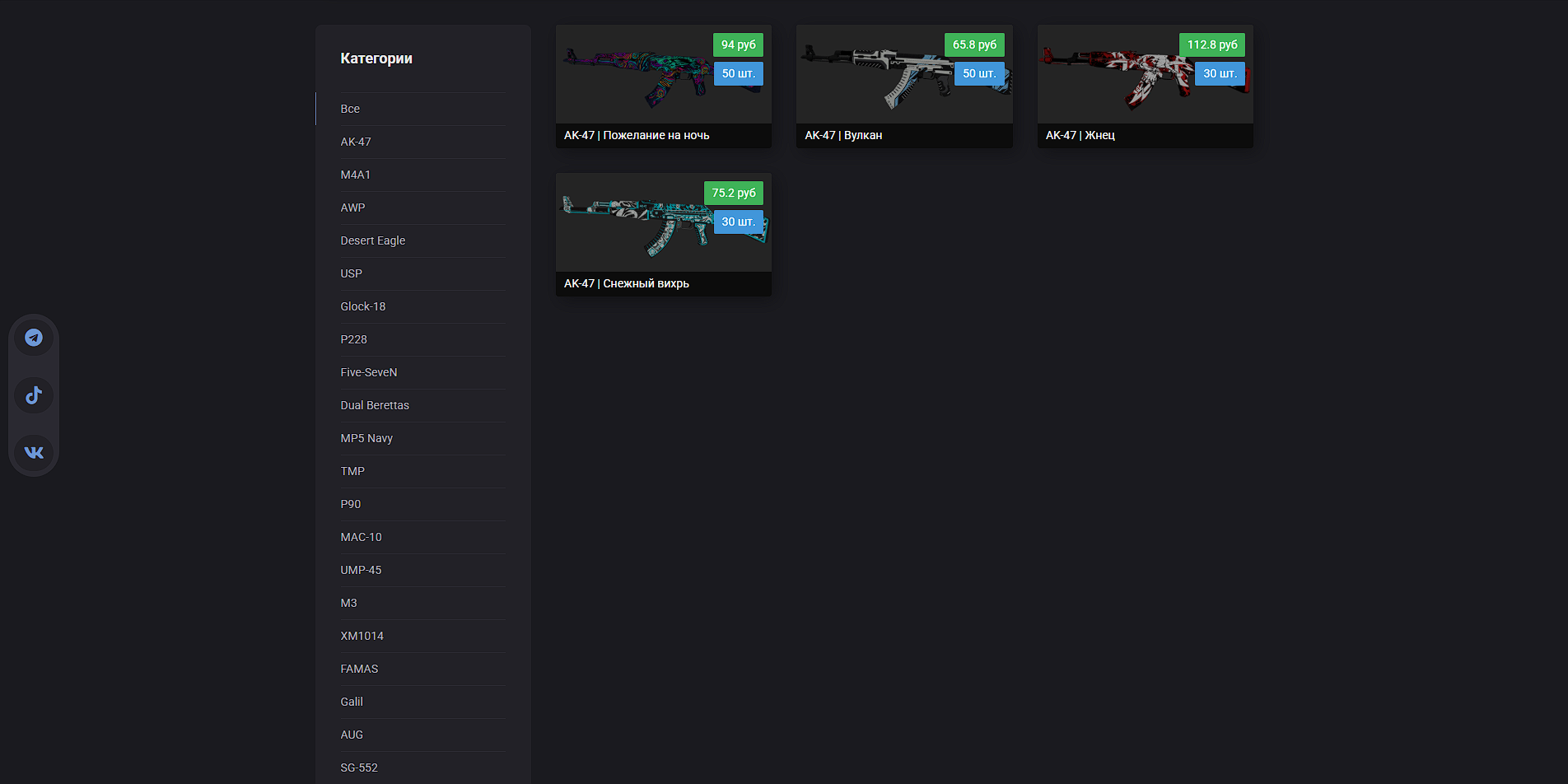Стремительное пополнение: Ассортимент торговой площадки будет постоянно и активно обновляться! Новые, редкие и эксклюзивные скины будут появляться регулярно, так что у вас всегда будет возможность найти что-то особенное.